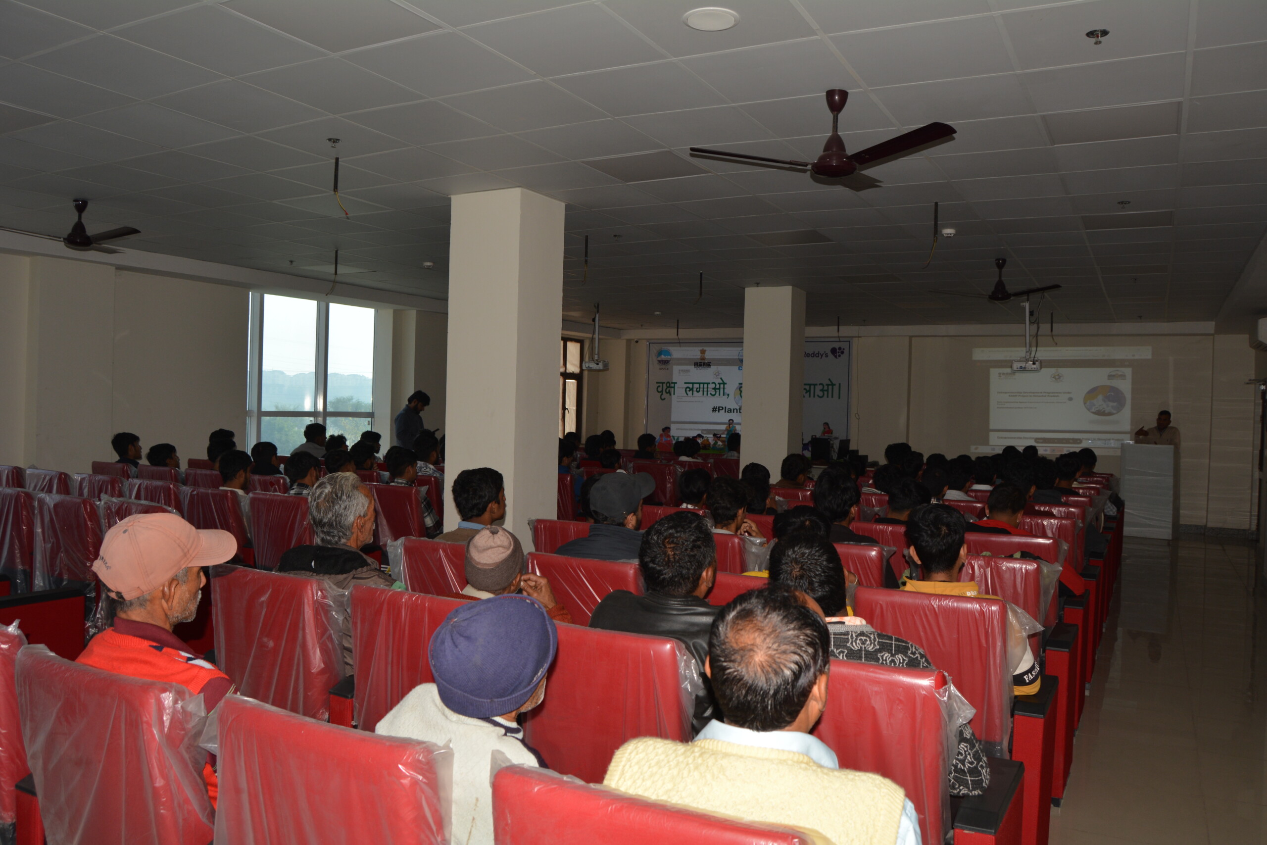 Bilaspur-based entrepreneur Mukesh Dhiman addressed the students as the chief resource speaker. He shared his entrepreneurial journey, early challenges, and the strategies that helped him build a successful venture. Through a detailed projector presentation, he explained key business aspects such as planning, risk management, innovation, and industry requirements.